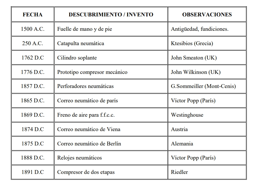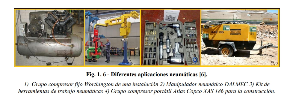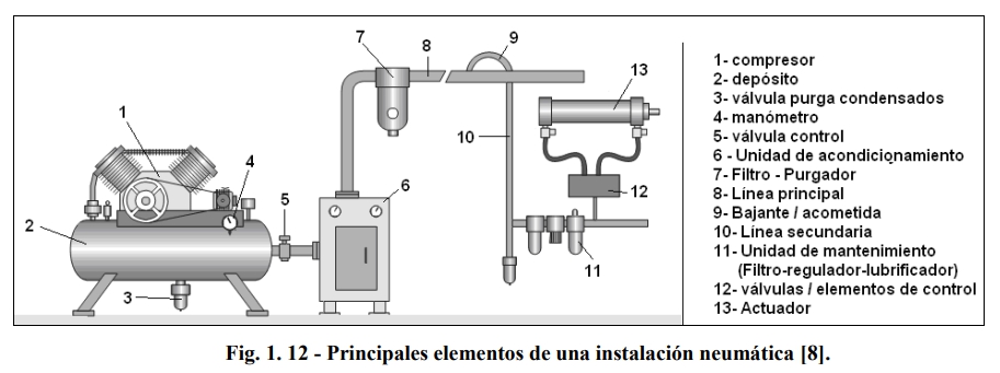 # INTRODUCCIÓN El aire comprimido es una de las formas de energía más antiguas que conoce el hombre y que éste ha utilizado y utiliza para ampliar sus recursos físicos. De los antiguos griegos procede la expresión "Pneuma", que designa la respiración, el viento y, desde el punto de vista filosófico, también el alma. Como derivación de las ideas que representa la palabra "Pneuma" se obtuvo, entre otras cosas el concepto Neumática, que trata los movimientos y procesos del aire. Para comprender el amplio uso de esta tecnología, y aunque posteriormente se verá más detalladamente, expliquemos brevemente el porqué del uso de la Neumática. Algunas de sus ventajas principales son: - El aire es de fácil captación y abunda en la tierra. - Es un tipo de Energía limpia. - El aire no posee propiedades explosivas, por lo que no existen riesgos de chispas. - Las velocidades de trabajo de los elementos neumáticos son razonablemente altas y de relativa facilidad de regulación. - El trabajo con aire no provoca efectos de golpes de ariete, con lo que no daña los componentes de un circuito. - Las sobrecargas no constituyen situaciones peligrosas o que dañen los equipos en forma permanente. - Los cambios de temperatura no afectan de manera significativa. - Permite cambios instantáneos de sentido en los componentes. Todas estas ventajas son de gran importancia, pero no olvidemos que, como todas las tecnologías, también tiene algunos inconvenientes. Para evitar la parcialidad, enumeremos sus desventajas más notables: - En circuitos muy extensos se producen pérdidas de cargas considerables - Requiere de instalaciones especiales para recuperar el aire previamente empleado - Las presiones a las que trabajan normalmente, no permiten aplicar grandes fuerzas - Genera altos niveles de ruido debido a la descarga del aire hacia la atmósfera    --- ## CONCEPTOS GENERALES DE NEUMÁTICA ## Fundamentos Físicos La neumática como tecnología es relativamente joven. Está en constante expansión, ya que parte de los nuevos componentes se hacen por encargo: el cliente se presenta con un problema de automatismo neumático y la empresa, después de su estudio da una posible solución al cliente. Esto hace que se incremente el número de dispositivos en neumática. A pesar de esto, los principios físicos son los mismos para todo desarrollo. Para familiarizarnos con estos principios neumáticos, veremos un breve resumen sobre: - Los diferentes conceptos de presión: atmosférica, relativa, absoluta,… - Las diferentes leyes y la ecuación general de los gases ideales - Las propiedades de la mezcla de gases y los conceptos asociados con el aire comprimido, como la humedad. ## El Aire comprimido y sus propiedades El hecho de comprimir aire es debido a que el aire comprimido constituye en realidad una forma de transporte de energía de muy fácil manejo y por esto su utilización se ha ido imponiendo paulatinamente en la industria. Las principales propiedades que han contribuido a que el aire comprimido sea tan ampliamente utilizado son: - Abundante: Está disponible para su compresión prácticamente en todo el mundo, en cantidades ilimitadas. - Transporte: El aire comprimido puede ser fácilmente transportado por tuberías, incluso a grandes distancias. No es necesario disponer tuberías de retorno. - Almacenable: No es preciso que un compresor permanezca continuamente en servicio. El aire comprimido puede almacenarse en depósitos y tomarse de éstos. - Además, se puede transportar en recipientes (botellas). - Temperatura: El aire comprimido es insensible a las variaciones de temperatura, garantiza un trabajo seguro incluso a temperaturas extremas. - Antideflagrante: No existe ningún riesgo de explosión ni incendio; por lo tanto, no es necesario disponer instalaciones contra incendio, que son muy caras. - Limpio: El aire comprimido es limpio y, en caso de faltas de estanqueidad en elementos, no produce ningún ensuciamiento Esto es muy importante por ejemplo, en las industrias alimenticias, de la madera, textiles y del cuero. - No recuperación: no requiere instalaciones especiales para la recuperación del fluido de trabajo (aire). - Constitución simple de los elementos: que implica precios económicos - Velocidad: Permite obtener velocidades de trabajo muy elevadas. (La velocidad de trabajo de cilindros neumáticos pueden regularse sin escalones.) - A prueba de sobrecargas y golpes de ariete: Los elementos de trabajo neumáticos pueden llegar hasta su parada completa sin riesgo de sobrecargas. Para delimitar el campo de utilización de la neumática es preciso conocer también las características adversas. - Preparación: El aire atmosférico comprimido debe ser preparado, antes de su utilización. Es preciso eliminar impurezas y humedad (al objeto de evitar un desgaste prematuro de los componentes). Desde el punto de vista microscópica, el aire presenta impurezas que, para su uso satisfactorio, deben eliminarse. - Compresible: Con aire comprimido no es posible obtener para los émbolos velocidades uniformes y constantes. - Fuerza: El aire comprimido es económico sólo hasta cierta fuerza. Condicionado por la presión de servicio normalmente usual de 700 kPa (7 bar), el límite, también en función de la carrera y la velocidad, es de 20.000 a 30.000 N (2000 a 3000 kp). Para masas superiores se debe recurrir a la Hidráulica. - Escape: El escape de aire (descarga a la atmósfera del aire utilizado) produce ruido. Se evitarse razonablemente con materiales insonorizantes y silenciadores. Cabe aclarar que el aire de descarga podría estar contaminado y que por lo tanto no puede recuperarse. - Costos: El aire comprimido es una fuente de energía relativamente cara; este elevado costo se compensa en su mayor parte por los elementos de precio económico y el buen rendimiento (cadencias elevadas). - Los movimientos de los actuadores neumáticos no son rigurosamente regulares ni constantes debido 